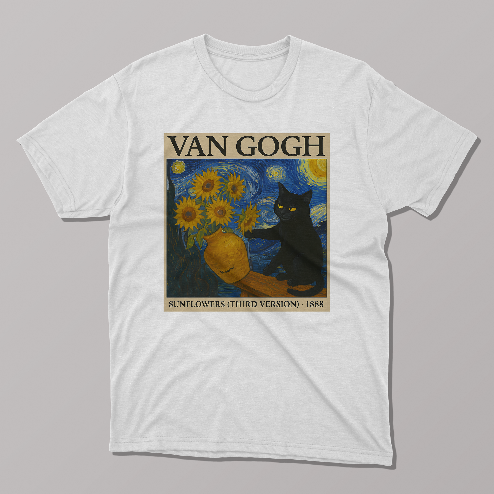 Van Gogh's Sunflowers and Starry Night Cat T-shirt